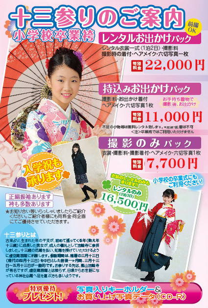 ![]() 七五三、十三参り、袴、成人式、宮参り、入園入学の撮影など、写真と衣装レンタルのことならリトルベアーにお任せください |