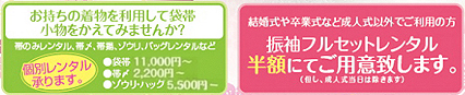 | 各成人式プランでご利用された方には、卒業式袴レンタルフルセットを半額!でご提供いたします。 |