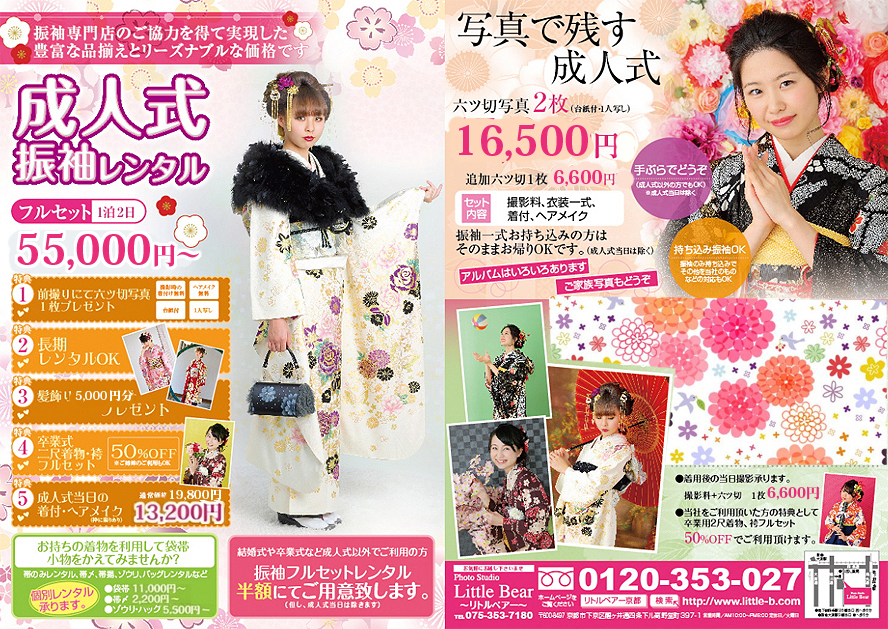 ![]() 七五三、十三参り、袴、成人式、宮参り、入園入学の撮影など、写真と衣装レンタルのことならリトルベアーにお任せください |
